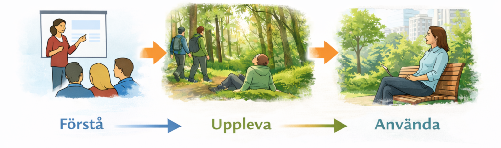 Syftet är att deltagarna inte bara ska ha haft en upplevelse, utan också få en tydlig bild av hur naturkontakt kan bli en naturlig del av vardagen.