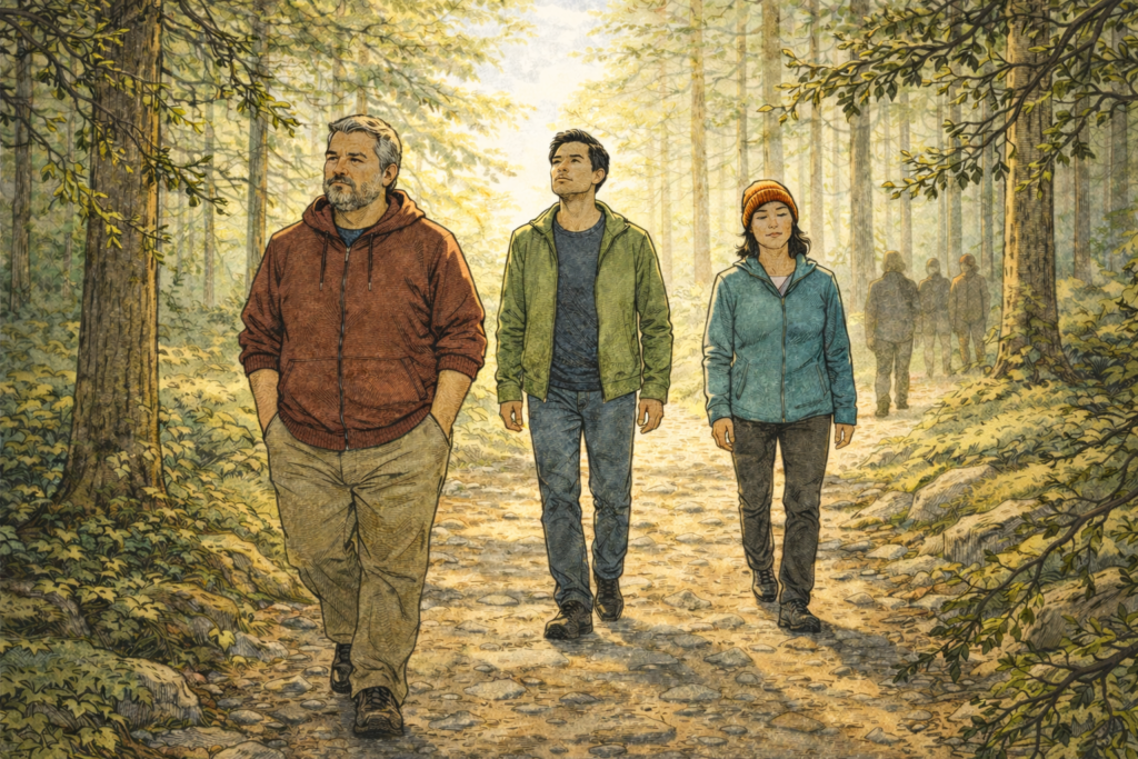 För många människor är det ovant att vara i naturen tillsammans utan att prata. Samtidigt är just detta ofta en av de enklaste förändringarna som kan fördjupa naturupplevelsen.